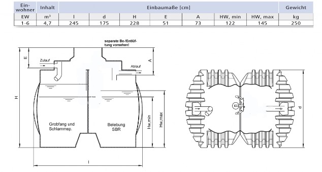 Die zuverlässige SBR-Kleinkläranlage - ganz ohne Pumpen - für Häuser bis 6 Einwohner.