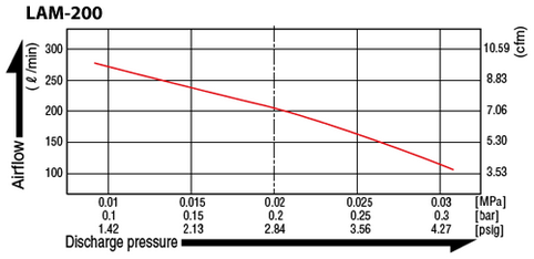 Der Medo Nitto Kohki LAM-200 bietet sich auch als eine sehr interessante Alternative zu kleinen Drehscheiber- und Seitenkanalverdichtern an. Bei einer Stromaufnahme von 220W und einem Geräuschpegel von lediglich 48 dB(A) eine ökonomische und geräuscharme Lösung.